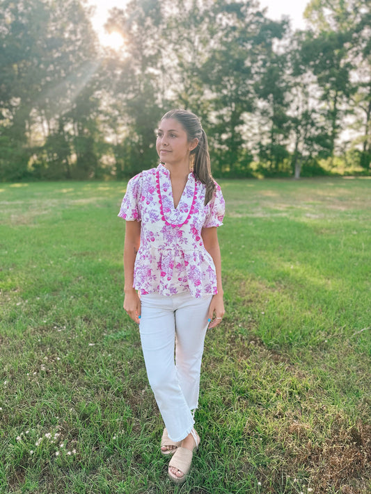 Floral Print Puffy Cropped Top and Mini Skirt Set